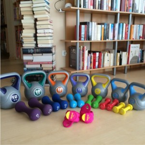 Da ich iiiiiiiiiiiimmer wieder von den sportbegeisterten Mädels unter euch gefragt werde, welche Kettlebells und Hanteln ich benutze, habe ich sie mal hier alle zusammen fotografiert: Sind die nicht alle vooooooooooll hübsch? 😀 Ich mag es ja, wenn sportlich gesehen alles so schön bunt ist! Die Kettlebells  habe ich von 3 bis 12 Kilo und …