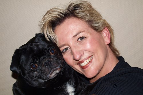 Und ein Foto von sich und ihrem Mops „Bob“ hat sie auch noch mitgeschickt: