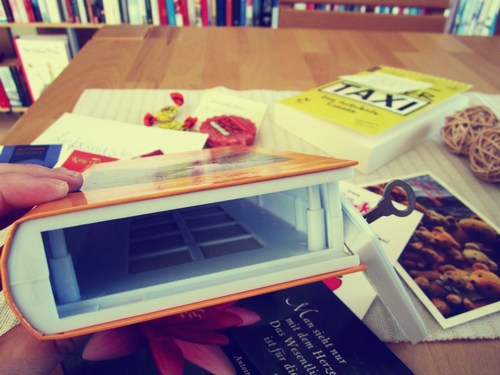 Sie schickte mir mein Männertaxi zum Signieren und ein weiteres Buch, von dem ich beim Rausholen aus dem Päckchen dachte „Huch, das ist aber leicht!“ Isses auch. Denn es ist gar kein Buch, sondern ein Geheimsafe! 😀