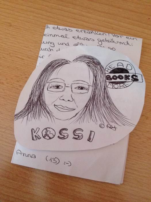 Gestern erreichte mich ein total lieber Brief der 13jährigen Anna, die mir nicht nur schrieb, dass sie einen super irrwitzigen Traum hatte, in dem ich (neben ihr) die Hauptrolle spielte, sondern die sich sogar die Mühe gemacht hat, mich zu zeichnen!