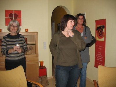 So um 18:20 Uhr trudelte dann bereits mein erster Gast ein. Karin, eine Leserin meiner HP und Tagebuchwelt, die vor einigen Monaten auf mich gestoßen ist, weil wir genau den gleichen Büchergeschmack haben und sie bei dem Lesen von Rezensionen ständig auf meinen Namen stieß und mich dann irgendwann anmailte. Es entstand ein lieber Mailkontakt und so war es klar, dass ich sie auch eingeladen hatte.