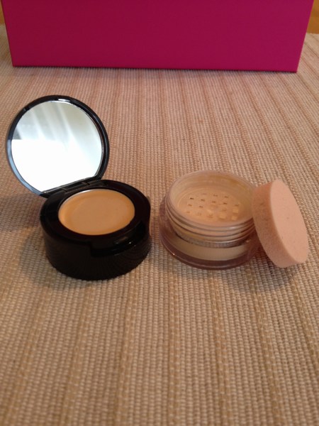 Es beinhaltet zwei Komponenten und zwar zum Einen einen cremigen Consealer (in meinem Fall die Farbe „Warm Honey, Nr. 32) und zum Anderen (und das kannte ich bisher nicht) ein Fixing Powder. Es handelt sich um eine Originalgröße von 5 g, es kostet im Laden 5,99 Euro und geöffnet schaut das Ganze so aus: