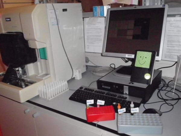Nachdem Mole bereits von Krankenschwester Petra durchgecheckt wurde, standen noch Laboruntersuchungen an. Mole ist jetzt schon 3 Jahre unterwegs. Da ist es an der Zeit ihn gründlich auf Herz und Nieren zu überprüfen. Er wechselte die Klinik und stellte sich bei mir im Labor vor. Schwester Petra hatte ihm bereits Blut abgenommen und ich führte die notwendigen Laboruntersuchungen durch… Und: was soll ich sagen: Mole ist kerngesund. Blutbild, Herz-, Leber- und Nierenwerte: alles im grünen Bereich! Auch mit seiner Gerinnung ist alles in Ordnung.