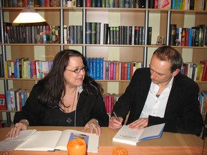 Im Anschluss an die Lesung gab Matthias bereitwillig Autogramme und ließ sich auch durch meine lustigen dummen Kommentare nicht beirren 😀