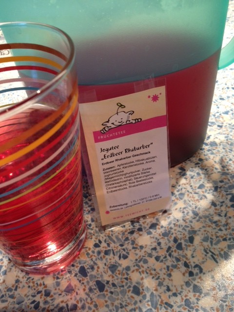 In meinem aktuellen Teewicht-Probierset fand ich unter anderem diesen JOGU-Erdbeer-Rhabarber-Tee.