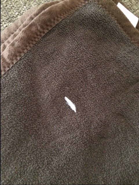 Ich legte sie auf die Couch, faltete sie auf und …. ihr seht es auf dem Foto … Das kann doch kein Zufall mehr sein, oder? Ich finde ja nicht ständig Millionen dieser Federn in meiner Wohnung.