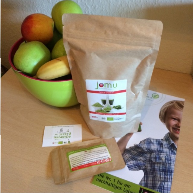 Die Jungs von @myjomu fragten, ob ich Lust hätte, mal ihr Gerstengras-Pulver zu probieren. Ich hab mich dann natürlich erstmal schlau gemacht und geguckt, was das Zeug überhaupt „kann“ 😂
